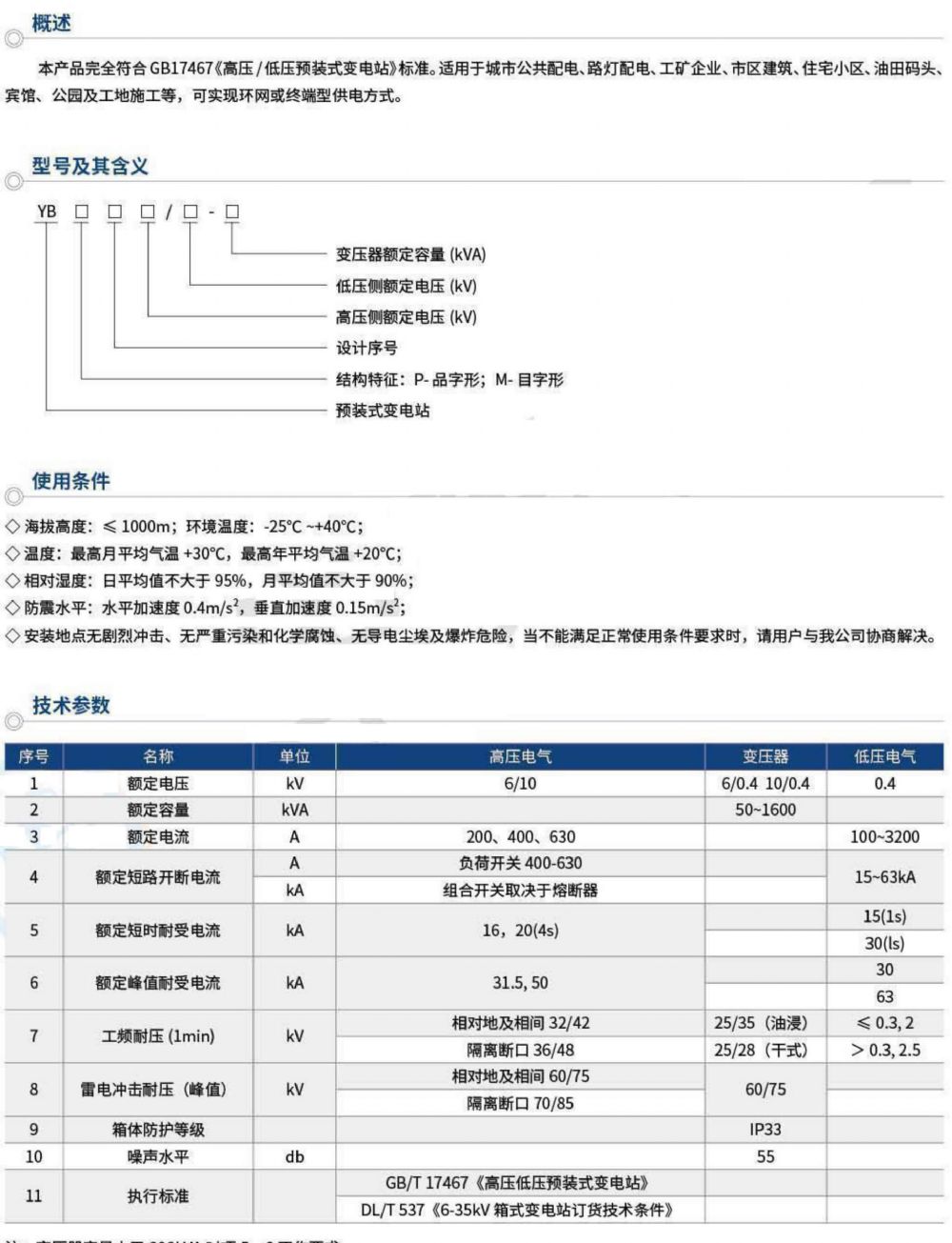 YB-12高壓/低壓預(yù)裝式變電站