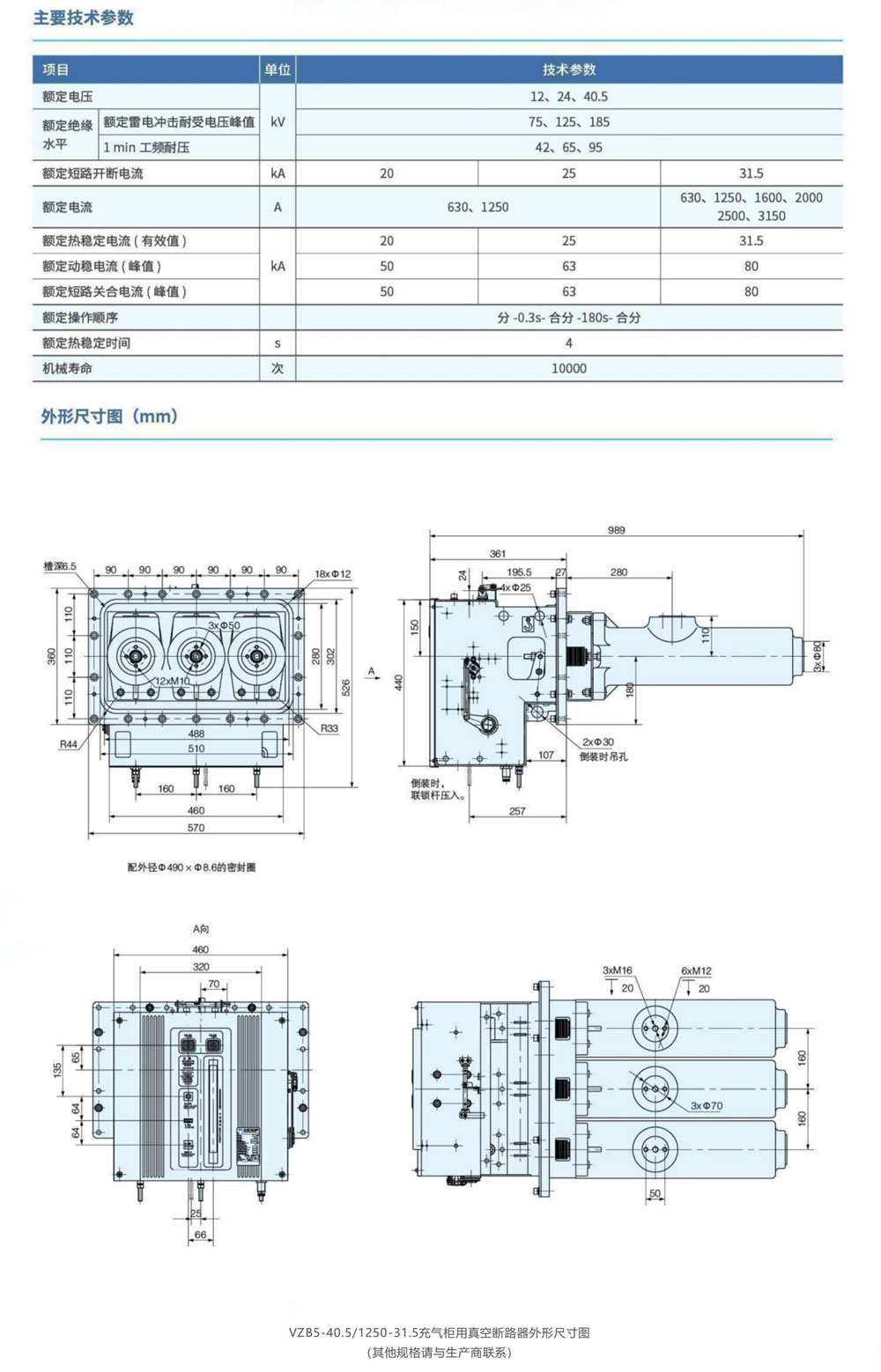 VZB5-12/24/40.5充氣柜用真空斷路器